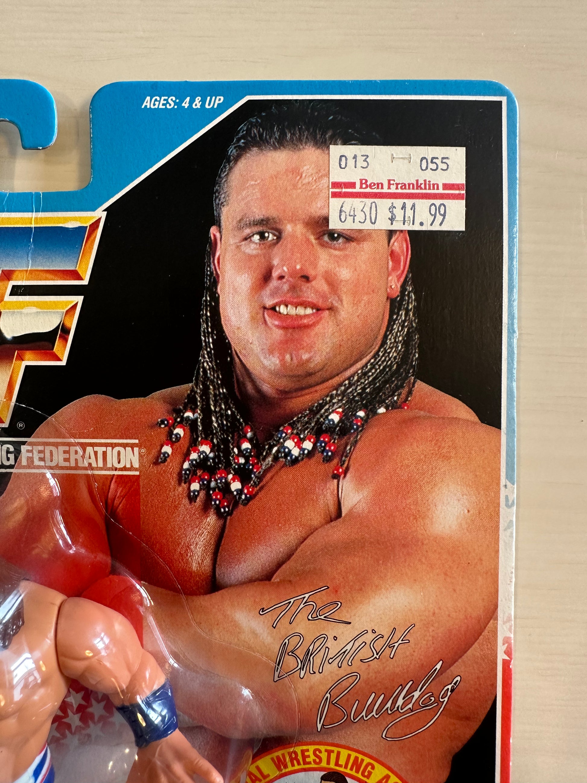 THE BRITISH BULLDOG WWF HASBRO SERIES 4 MOC MINT ON CARD UNOPENED WRESTLING ACTION FIGURE - A nice condition Bulldog, the card is in great shape except for a dent at the bottom of the card as visible in the pictures attached. There is a price tag at the top right side of the front of the card. Bubble in excellent shape. Sits flat on a surface. Free worldwide shipping! Please contact us using the button at the bottom right of the screen with your questions with regard to this figure.