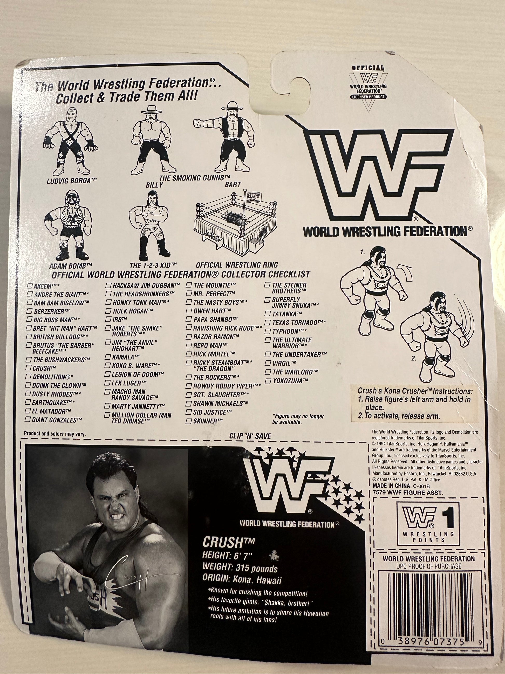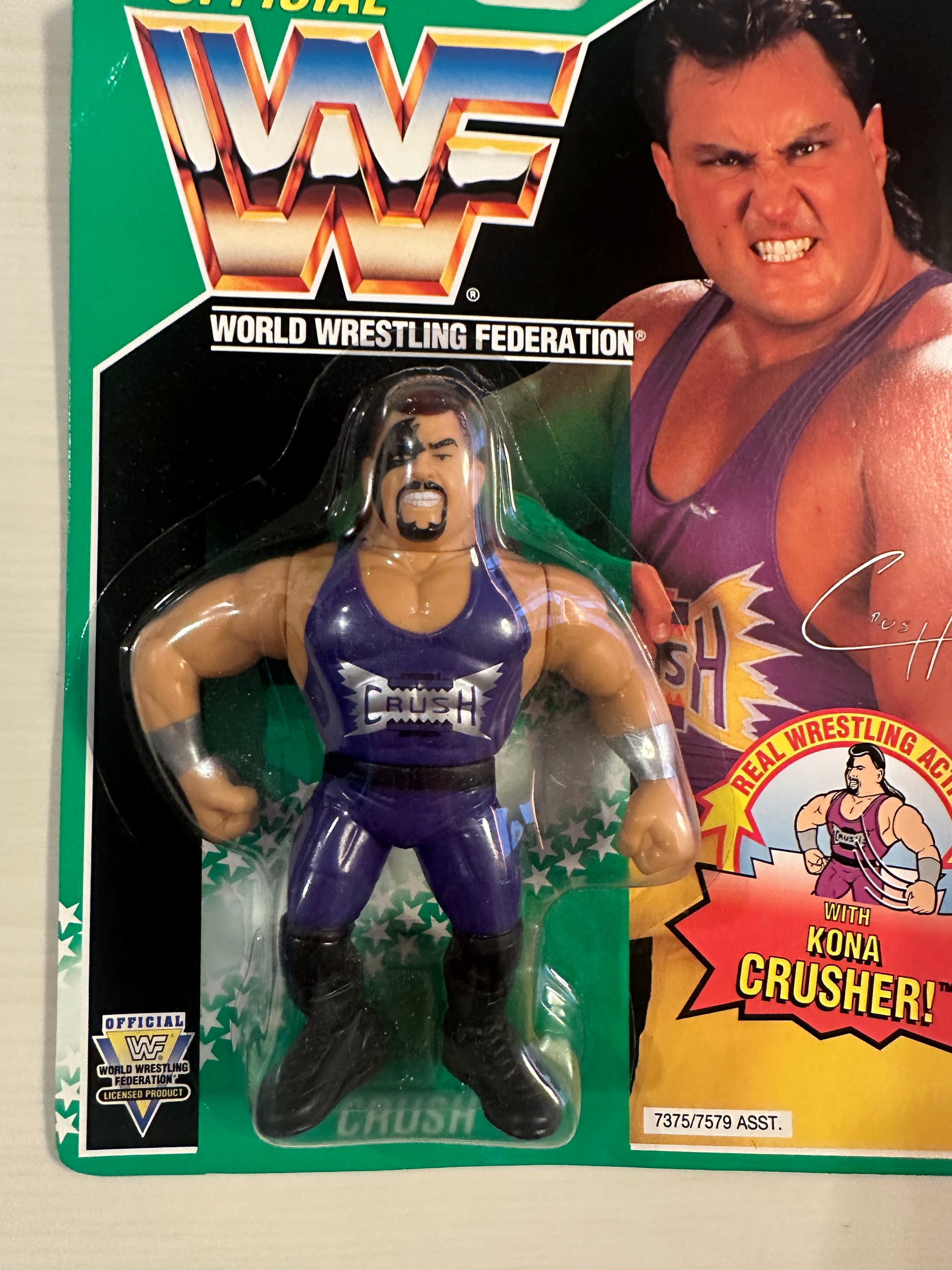 CRUSH SERIES 11 (GREEN CARD) WWF HASBRO MOC MINT ON CARD UNOPENED WWE WRESTLING ACTION FIGURE - Free worldwide shipping! One of the rarest figures of the entire series, the EVIL CRUSH green card version from Series 11. The figure in lovely condition, with the bubble having no damage (such as dents or cracks) and it is firmly secured to the card. The card sits flat on a surface. Please check all pictures before purchasing this item. Also, please contact us if you have any questions about this figure, using the button at the bottom right corner of the site.