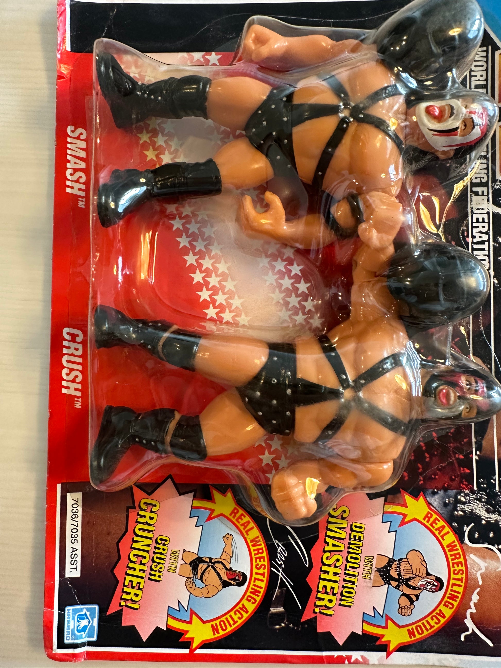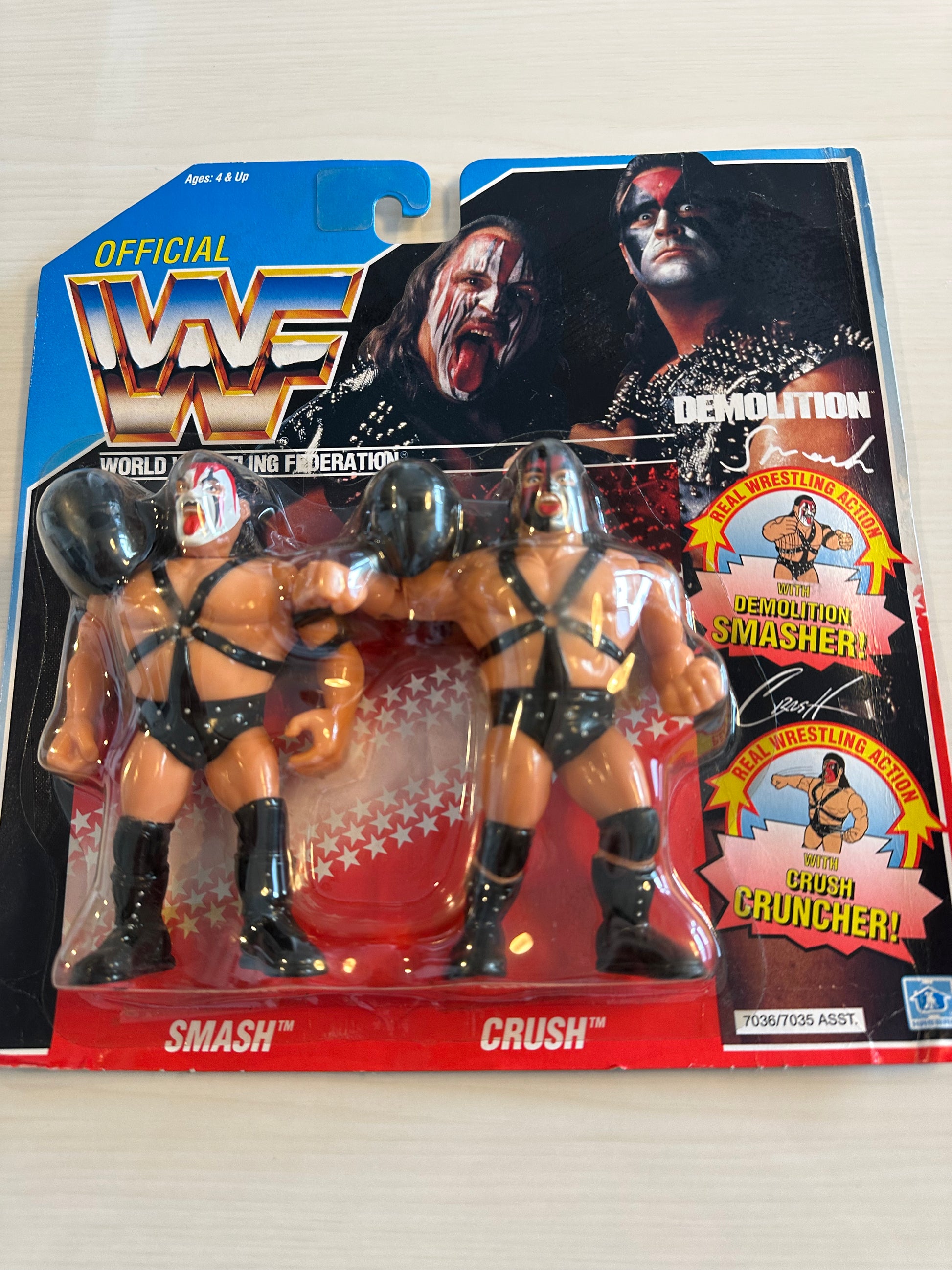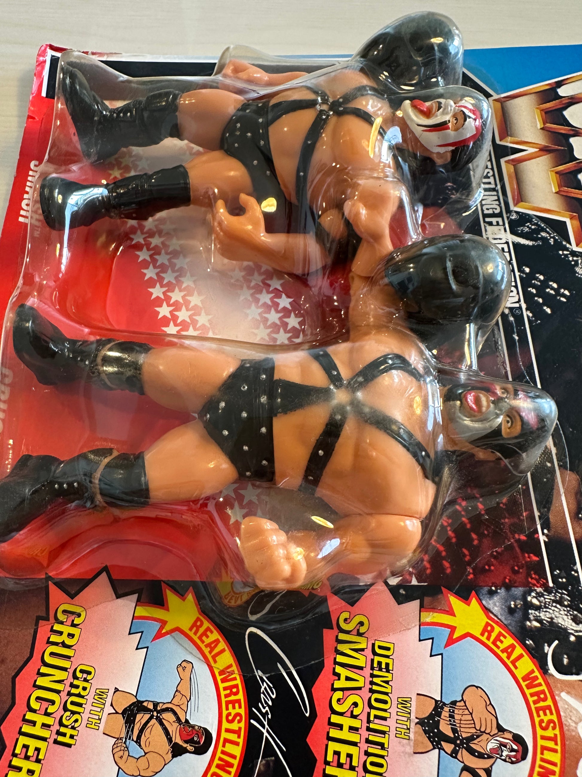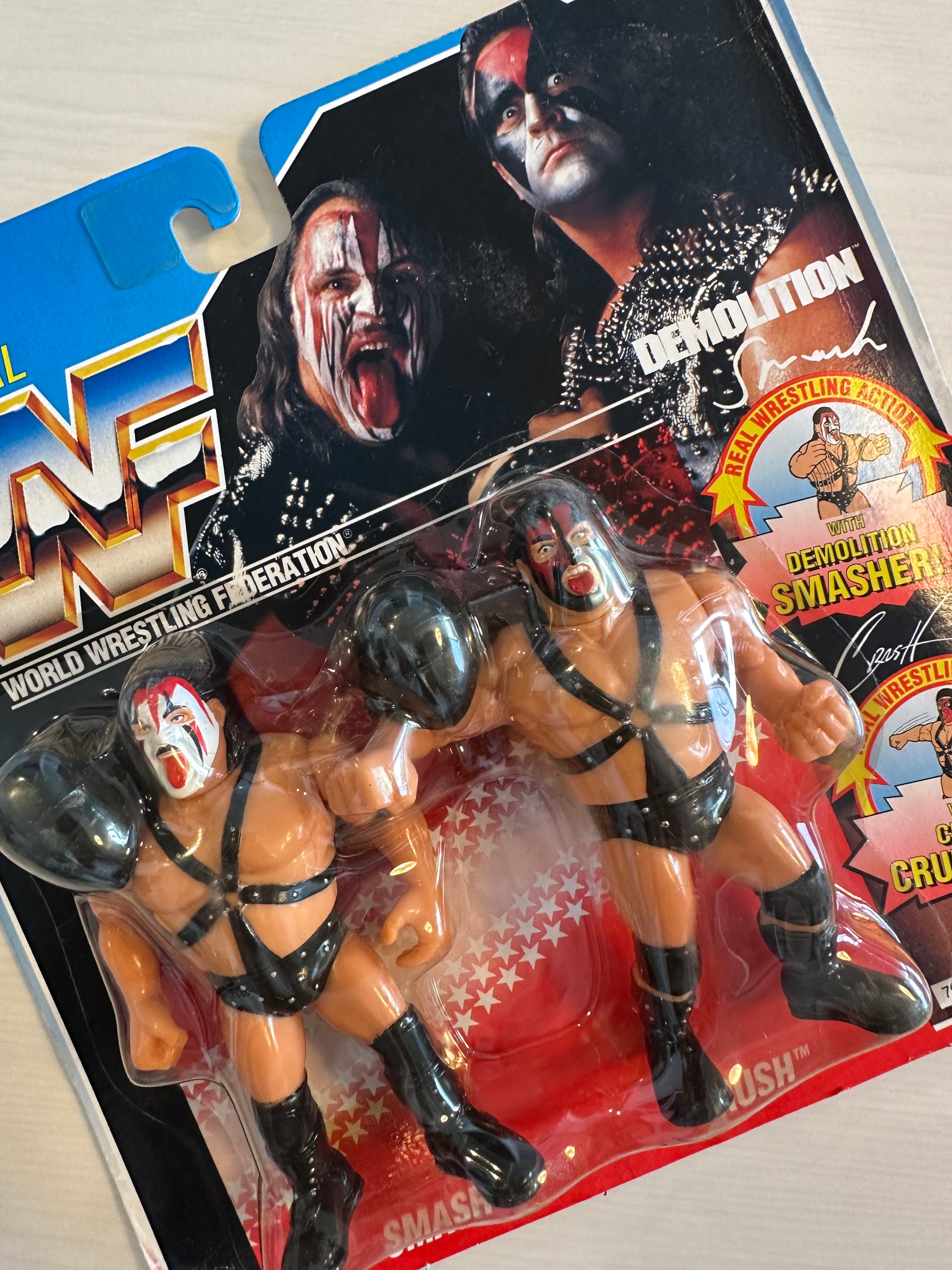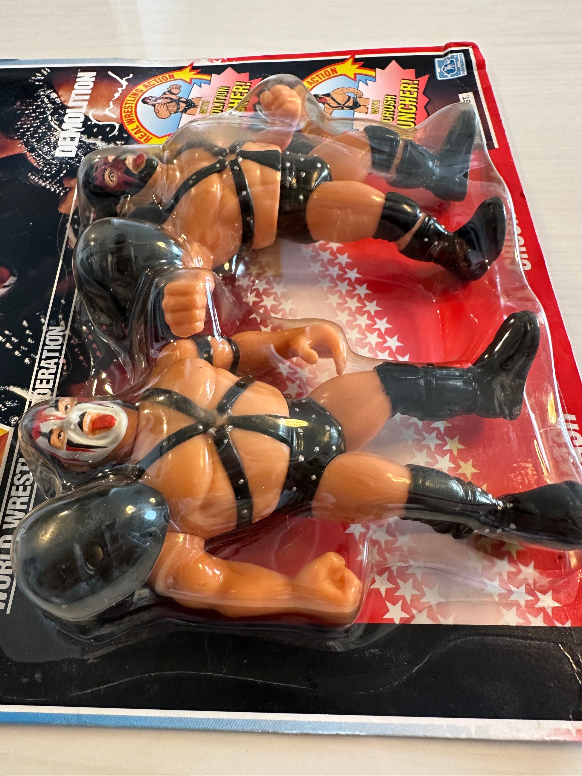 DEMOLITION WWF HASBRO SERIES 2 TAG TEAM UNOPENED WWE WRESTLING ACTION FIGURE SET - Demolition Smash and Demolition Crush - An extremely hard figure to find in such great condition, just some minor folding at the edges of the card - however, the bubble is firmly secured to the card with no damage to the bubble. Free worldwide shipping! Please contact us if you have any questions about this figure.