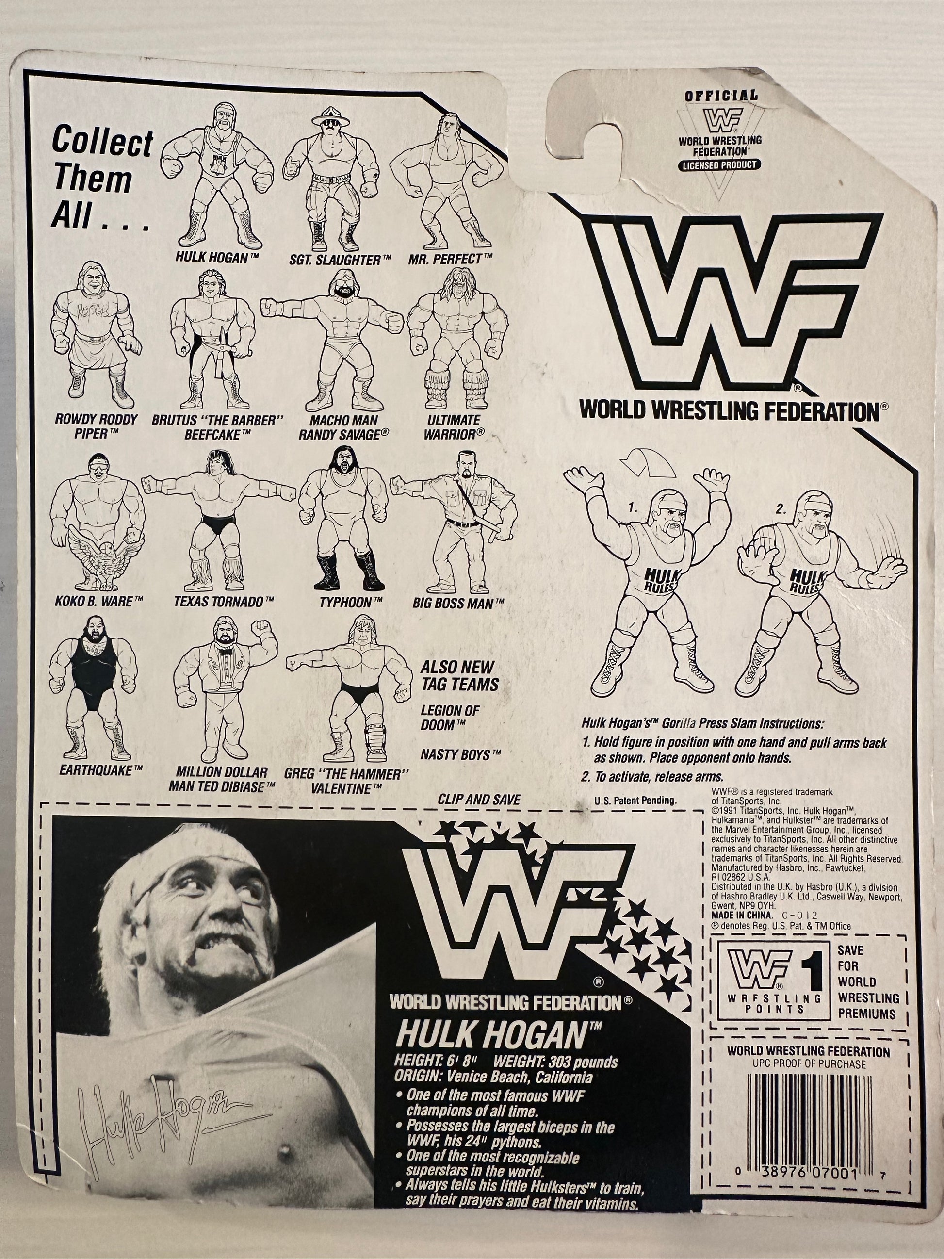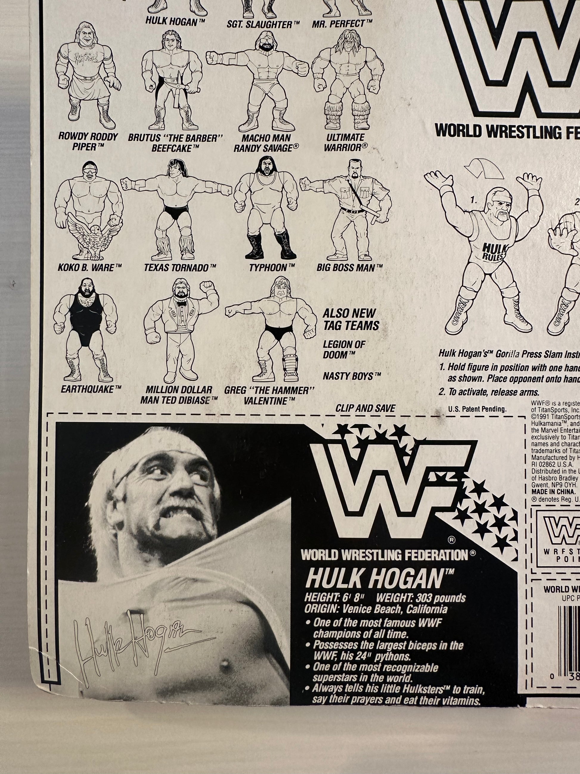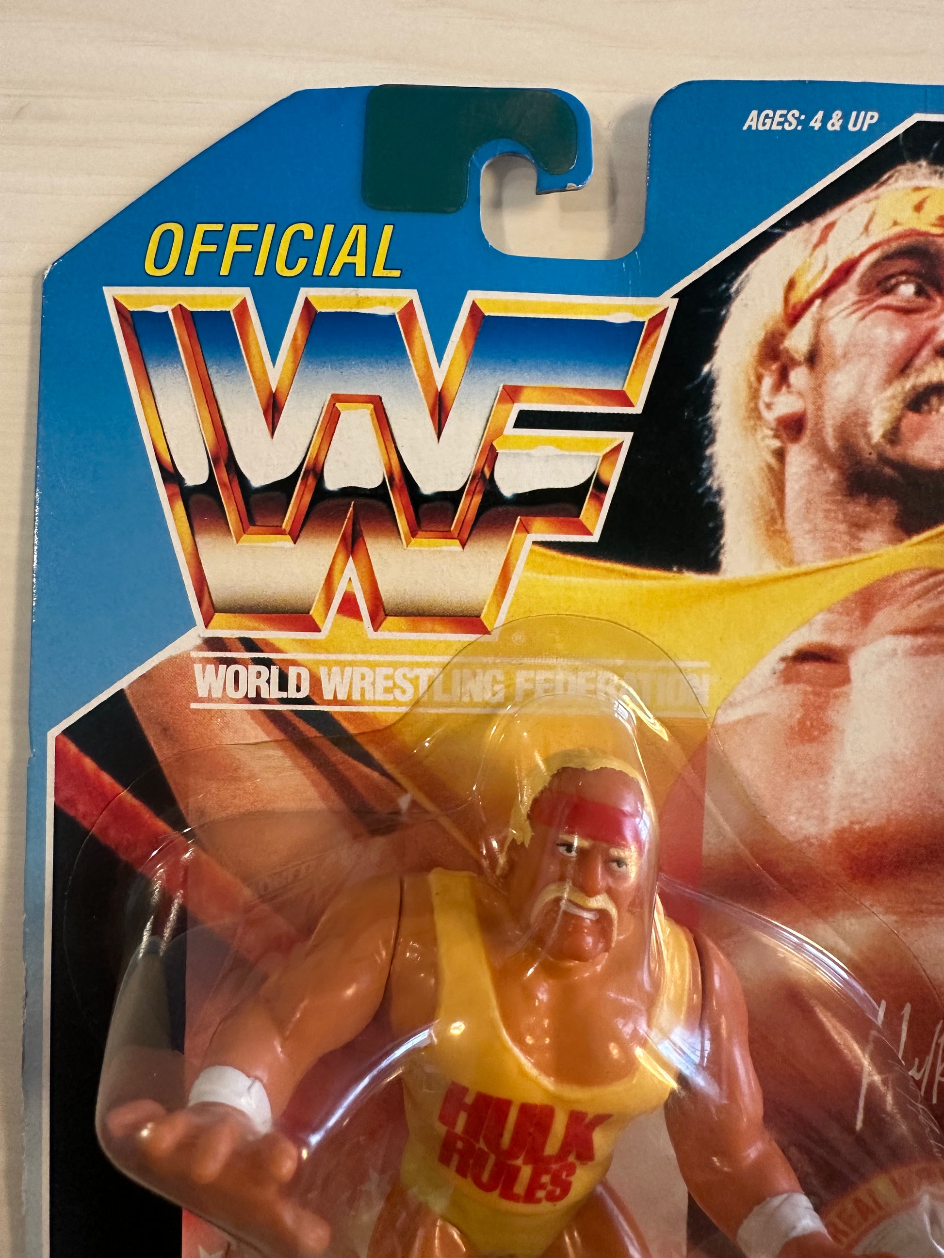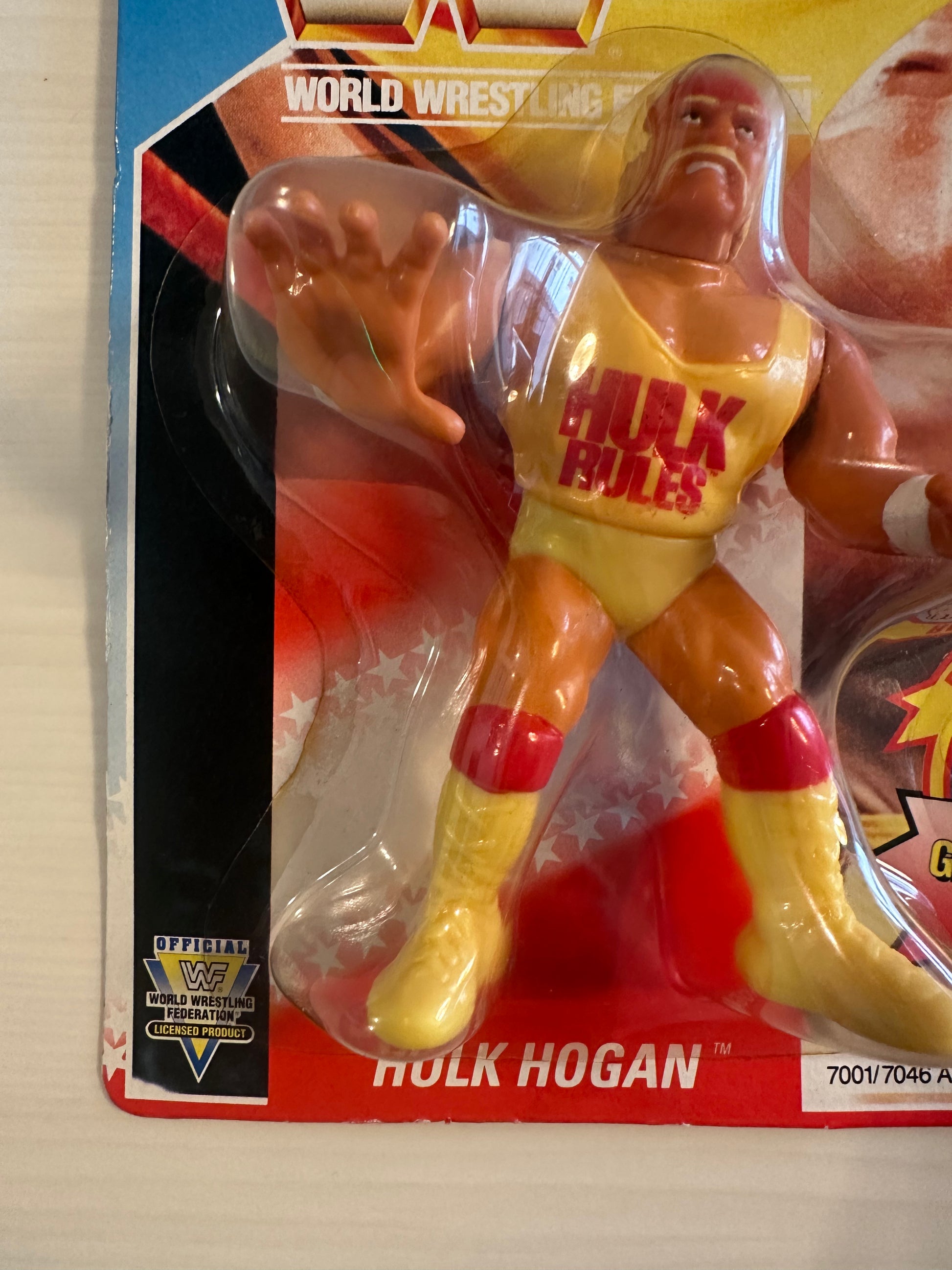 HULK HOGAN SERIES 1 WWF HASBRO MOC MINT ON CARD WWE WRESTLING ACTION FIGURE UNOPENED - A brilliant condition Hogan from Series 1 of the series. The figure sits nice and flat on a surface and has just minor scuffs around the edge of the card. The bubble is firmly secured to the card, but does have a dent by Hogan's hand as seen in the listing images. Please contact us with any questions about this figure. Free worldwide delivery!