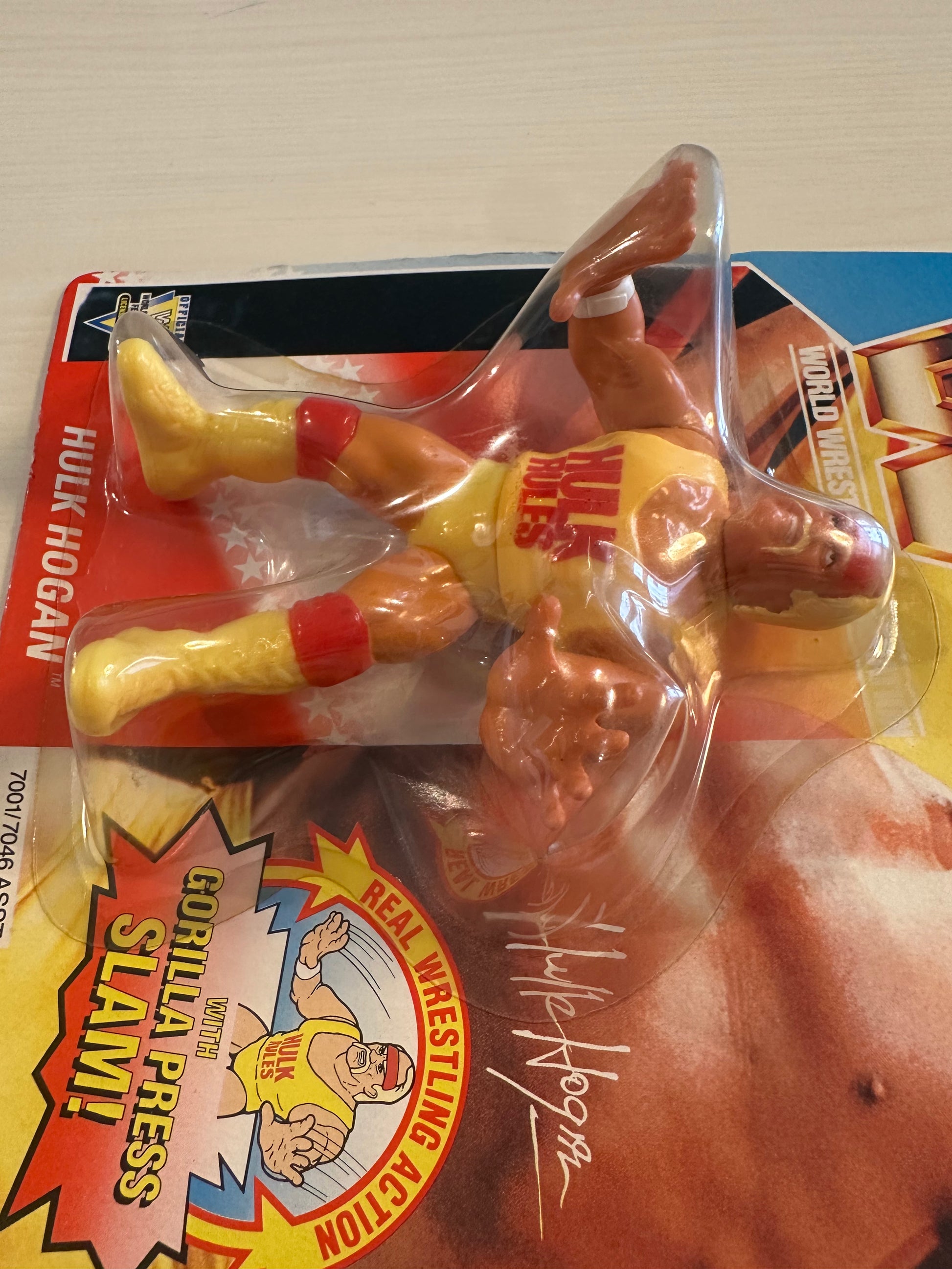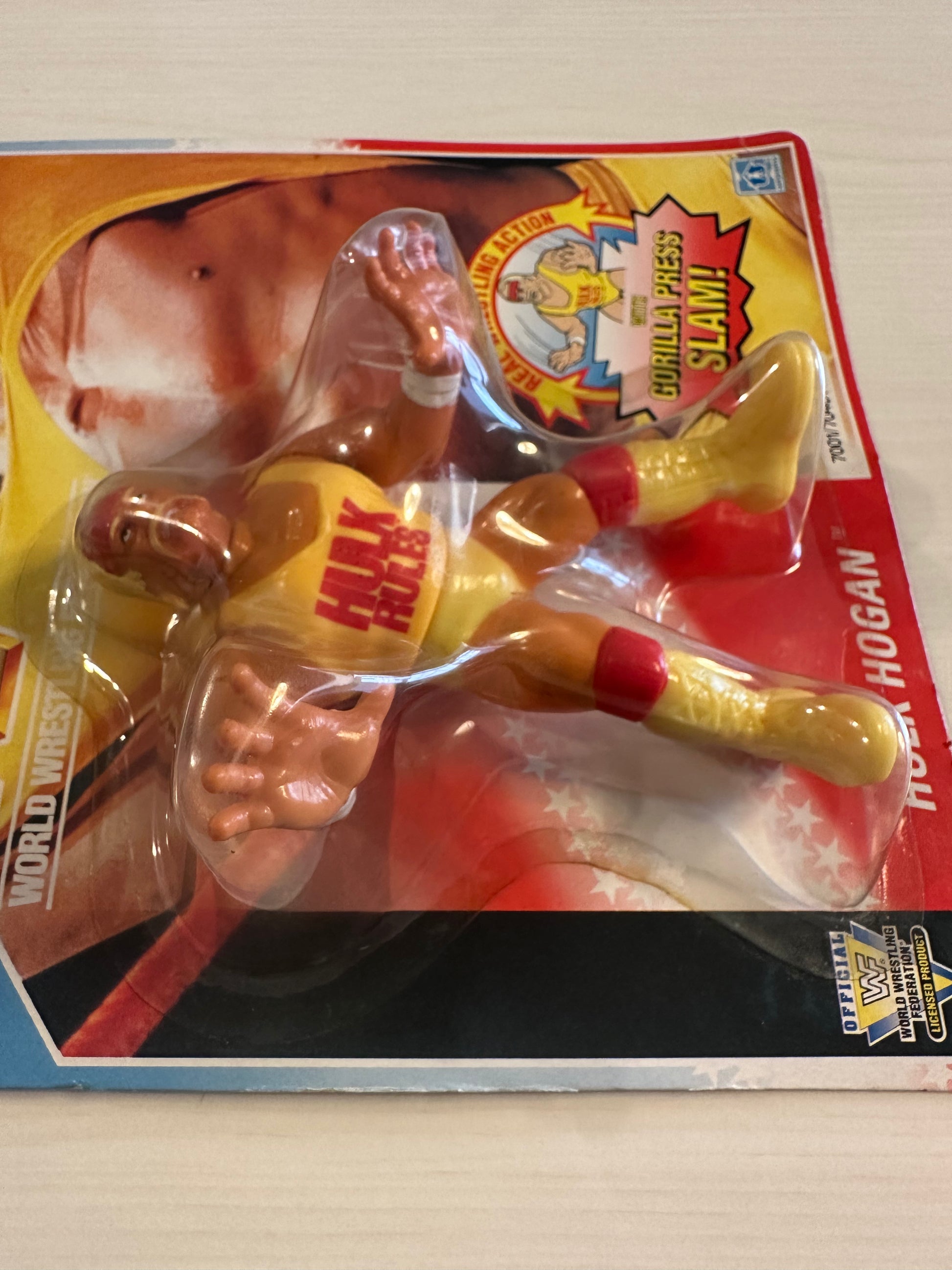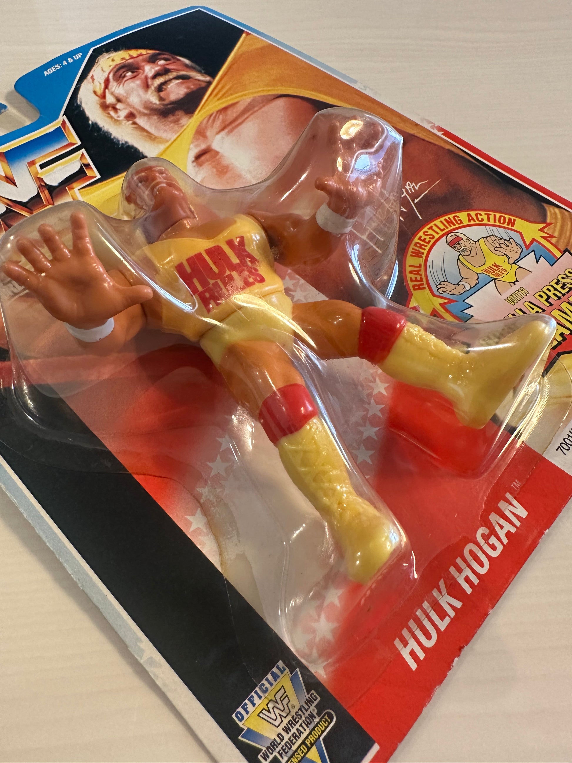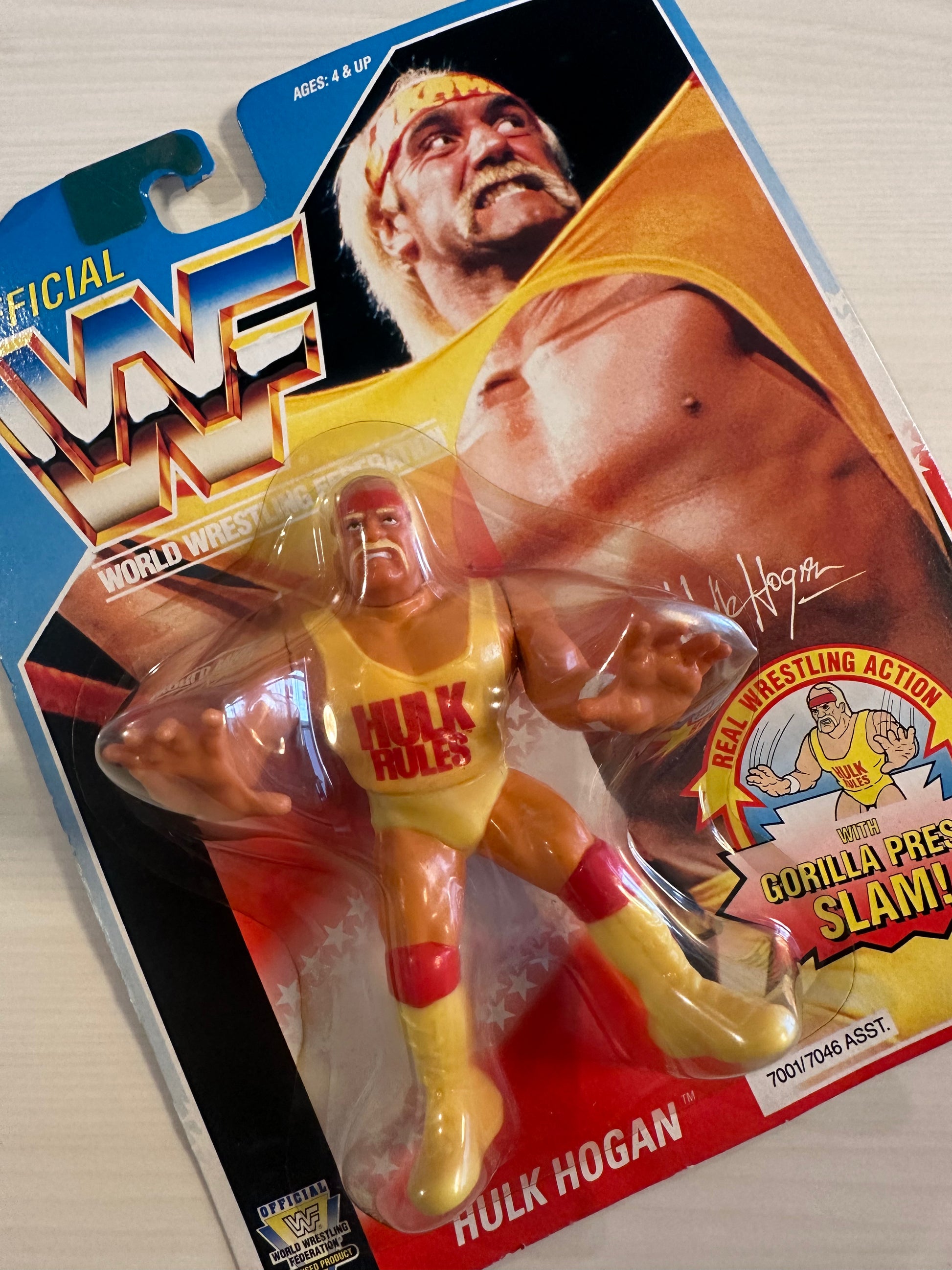 HULK HOGAN SERIES 1 WWF HASBRO MOC MINT ON CARD WWE WRESTLING ACTION FIGURE UNOPENED - A brilliant condition Hogan from Series 1 of the series. The figure sits nice and flat on a surface and has just minor scuffs around the edge of the card. The bubble is firmly secured to the card, but does have a dent by Hogan's hand as seen in the listing images. Please contact us with any questions about this figure. Free worldwide delivery!