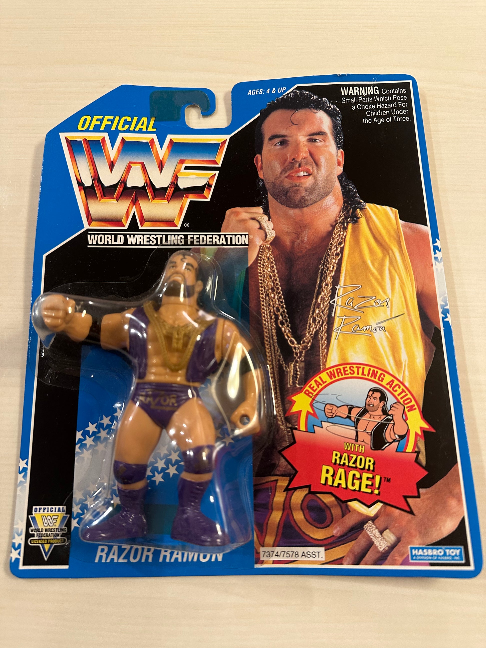 WWF HASBRO SERIES 10 RAZOR RAMON UNOPENED WWE WRESTLING ACTION FIGURE - RARE PURPLE VARIANT - A very nice Razor Ramon unopened mint on card. The bubble is in great condition, no cracks or dents. There are some minor scuffs around the edge of the card. Please check all images closely before agreeing to purchase this figure. Free worldwide delivery.
