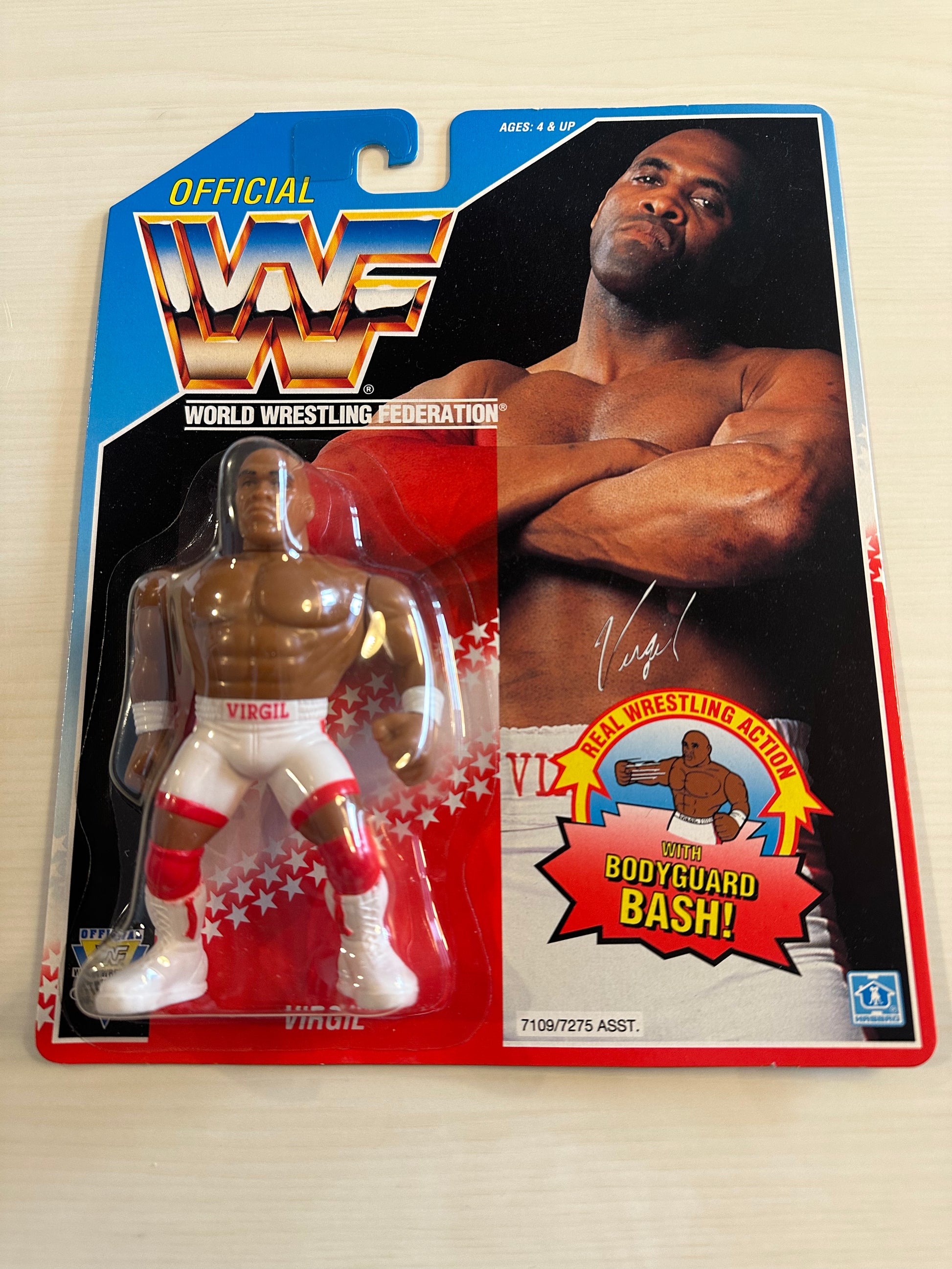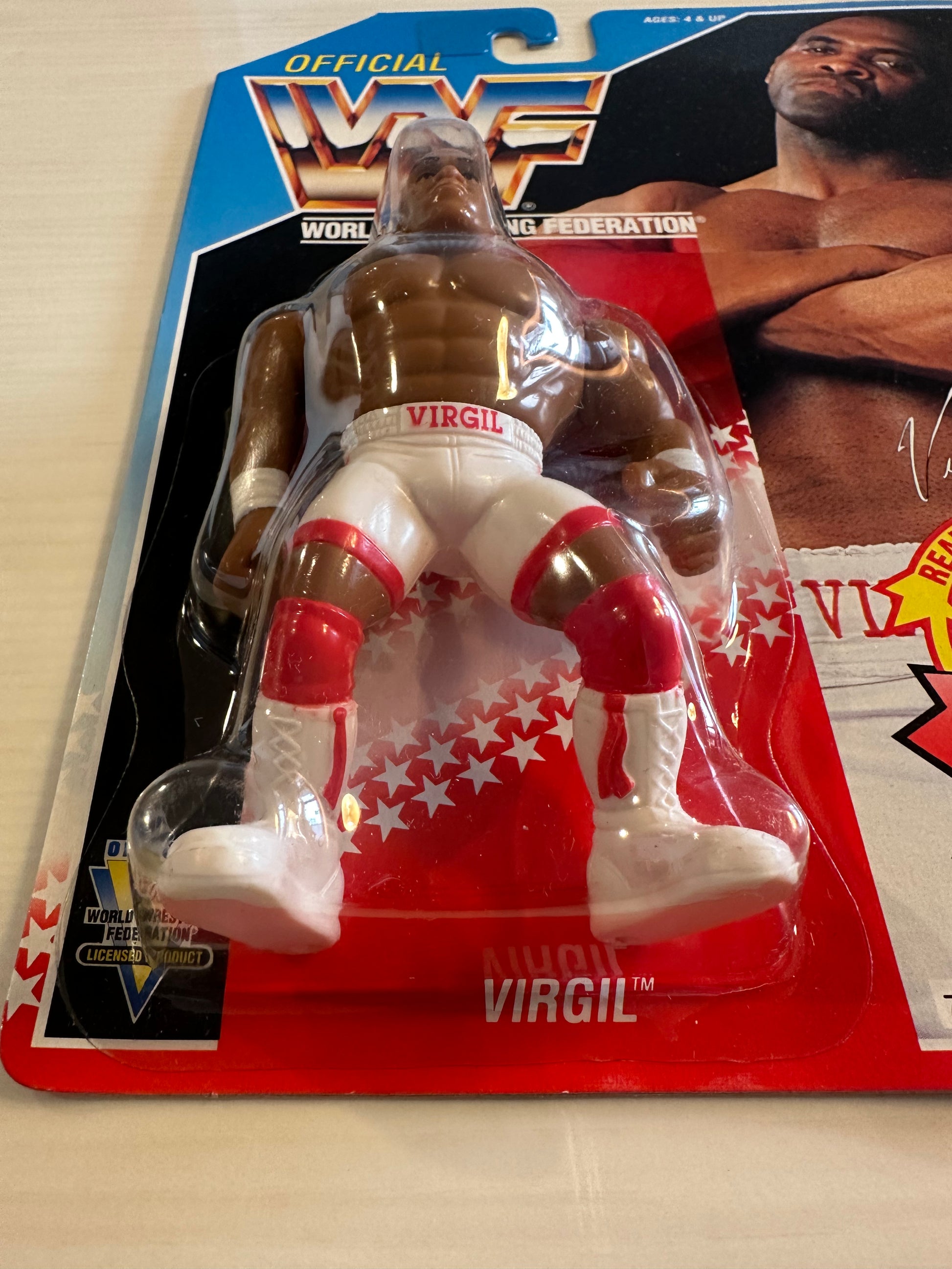 WWF HASBRO MOC MINT ON CARD VIRGIL SERIES 5 WWE WRESTLING ACTION FIGURE - A beautiful condition Virgil, ready for grading. The card sits lovely and flat on a surface. There are no cracks or dents on the bubble, and it is firmly secured to the card. Check all photos before purchase. Free worldwide delivery.